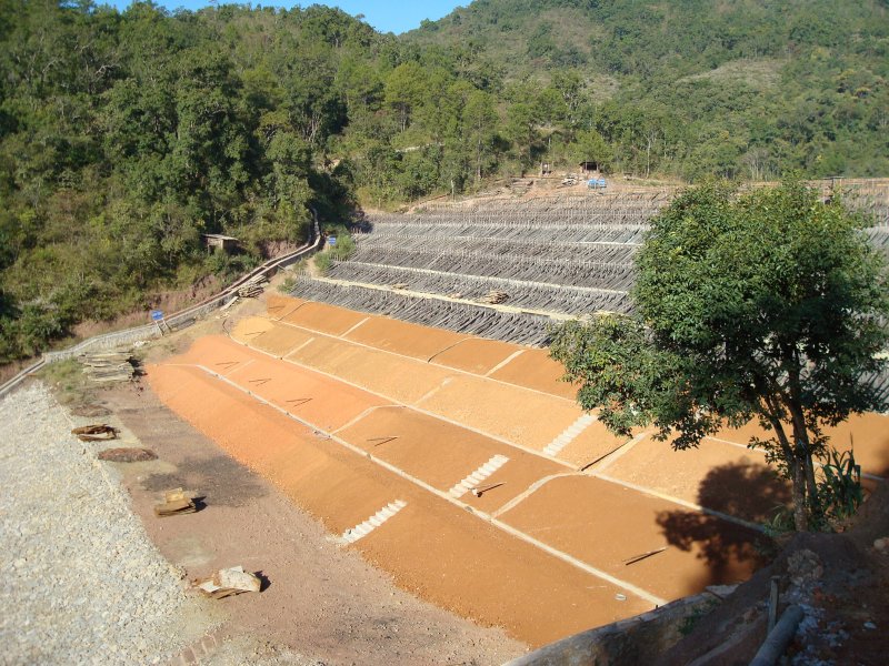 Preparation for revegitation of tailings dam wall, January 2008